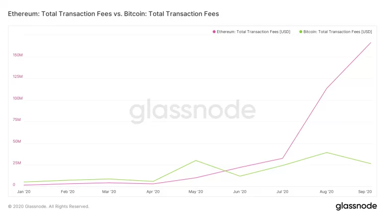 This week, the tech markets remained hot with new and planned IPOs (Palantir, Asana, Roblox, McAfee), M&A (NTT-Docomo, Tencent-Sogou, Ivanti-MobileIron, Cisco-PortShift), and fundraises (Allbirds, XtalPi, Bitpanda). At the same time, non-tech companies and industries are struggling: Disney laid off 28,000 people, Goldman laid off 400 (70,000 total across the banking industry), and the NYC and SF commercial real estate and rental markets are tanking. Lastly, the CFTC and DoJ charged the founders of BitMEX for operating an unregistered trading platform as well as violating anti-money laundering (AML) and know-your-customer (KYC) regulations, arresting the CTO today in Massachusetts. This, as DeFi hit monthly records of $11B AUM and $22B in monthly trading volumes—causing Ethereum’s miner fee revenues to hit $166M, 6.4x that of Bitcoin’s at $26M, according to glassnode: